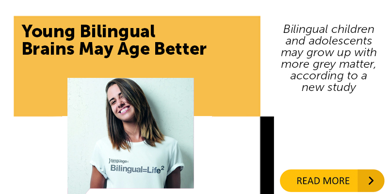 Young Bilingual Brains May Age Better Bilingual children and adolescents may grow up with more grey matter, according to a new study